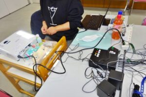 [写真]Linerさん自作の早押し機。いやー本当に完成させちゃうんだからすごいわLinerさん(^_^;)(Text by むろかつ(番頭役))