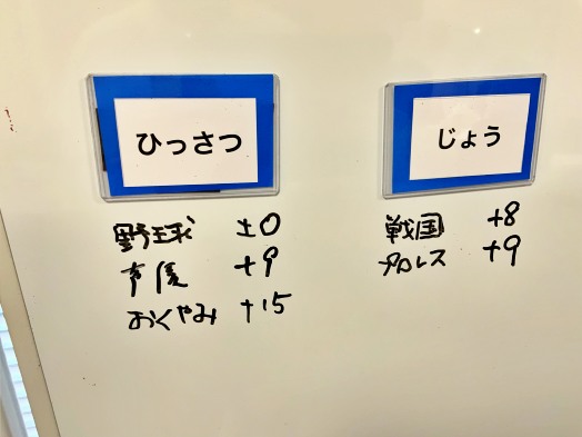 【ほしまる3◯→+13p、Liner1◯1×→+9p、むろかつ2×失格→-10p】