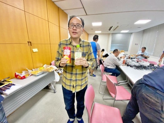 ↑当然、次のBブロックの皆さんは外周でギャラリーとして見学&ガヤとなり、更におやつタイムになってました(背後にいるキアロさんが立っている場所にいつもの大量の差し入れお菓子があります)。