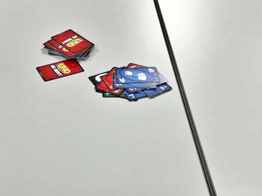 「手持ちが25枚のゲームオーバー寸前でも、逆に残り1枚のUNOあがり直前でも他の人の動向次第では全く油断できない」