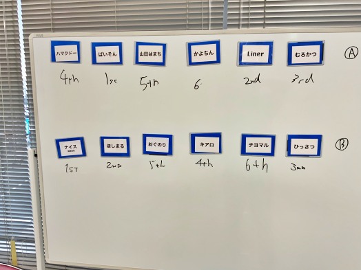 結果としては、ほしまる先生2位、ひっさつ会長3位、キアロさん4位、そして飛んだおぐのりさん5位、チヨマル先生6位…という次第でした。