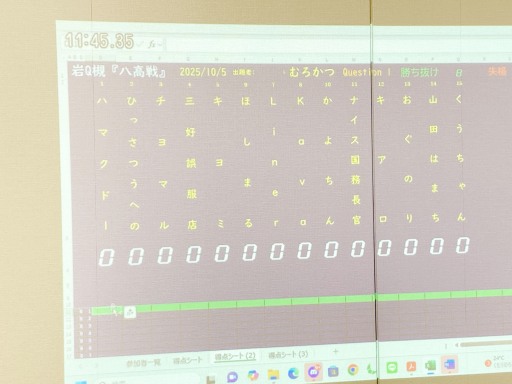 おおまかなルールとしては毎度同じで、「前フリが長い(例外もたまにあり)」「誤答発生時は最大4-6人まで回答権あり(ただし1人1問1回なのでその問題で誤答した人の回答権はなくなる←実際に誤答した直後に押しちゃった人がいました。うーん、そのお気持ちは痛いほどわかります(^_^;))」が「八高戦ならでわ」といったとこでしょうか。