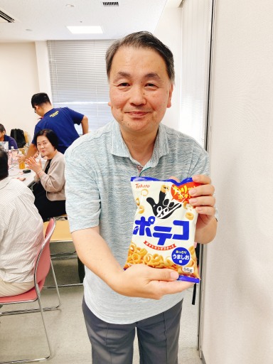 そして山田はまちさんにも優勝賞品としてダイソーで購入してきた東ハト「ポテコ」を贈呈いたしました。おめでとうございます。