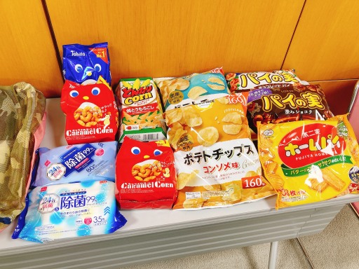 前回の大量の差し入れお菓子類(むろかつが買い出ししたものです)。当日はこれに加えて、
