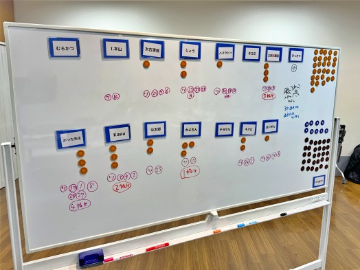 その後はQ87「命日」を太古先生正解で1◯、Q88「枝葉を落とす」はチヨマル先生・ばいそんさんが誤答2休になった後3着判定でハマクドーさんが正解して2◯にすると、Q89「北広島市→北海道」を太古先生が正解してこれまた2◯に。元は明治時代に広島県から移住してきた開拓団が多数住んだことから「広島村→広島町→北広島市」と名付けられたとこで、北海道日本ハムファイターズの新本拠地・エスコンフィールドがある自治体でもあります。