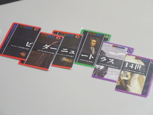 このような古今東西の偉人・著名人のカードを組み合わせて長い名前や珍名などを作るおもしろいゲームでした。ちなみに勝敗的には、カードの上の方に書いてある武力or知力の合計数値が高いほうが勝ちというルールや、凄い場合には、「主人公にふさわしい偉人が勝利する」「名前が長い偉人が勝利する」←ゆえにタイトルが「寿限無」というのも(笑)…などなどの多種多様なルール形式の戦いがあり、これらで勝敗を決して行くという企画でした。