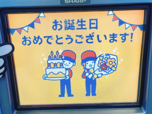 そしたら私、11月生まれなのでスマホの出光のアプリを機械のQRコードのとこにかざしたら、この画面とハッピーバースデの音響が(笑)