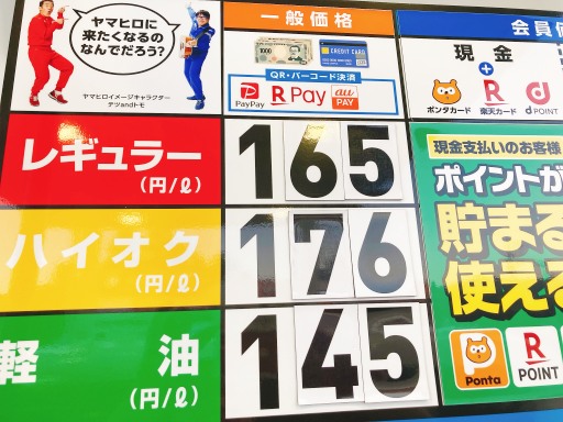 で、カゴ2つ分のお菓子などを買いまして、帰宅する途中にイオンモール近くのセルフのガソリンスタンドへ。ここは圏央道の日の出ICの近くで近隣では最も安いことで定評がありまして結構いつも混んでます。