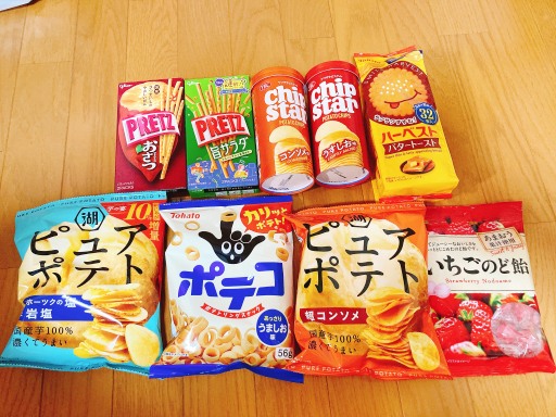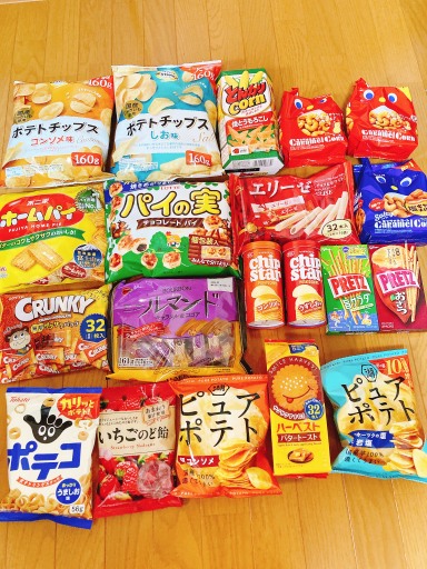 その中でも下段にあるこの9種類のお菓子は、こちらは前日に同じイオンモール日の出の中にあるダイソーで税抜き100円で買ったお菓子類です。実は昨今の物価高で、現状ではイオンでも西友でも100円で買えたお菓子がどんどん減ってまして、むしろダイソーの方が重宝しててありがたい限りです。ここのダイソーもめちゃくちゃ広く、更に同じイオンに100均のキャンドゥもあるので競争が激しいみたいで特に食べ物系が物凄く充実しております。