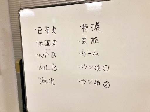 ジャンルは 日本史 米国史 NPB MLB 麻雀 芸能 特撮 ゲーム ウマ娘①&②