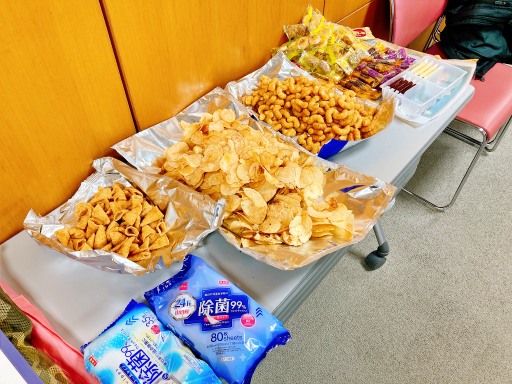 ↑午後からはポテチやキャラメルコーンなどの個別包装ではないお菓子も開封されまして「遠慮なく食ってください。むしろ余ると困りますんで」と、オープニングの挨拶でむろかつがいつも口上を述べた次第でした(笑)