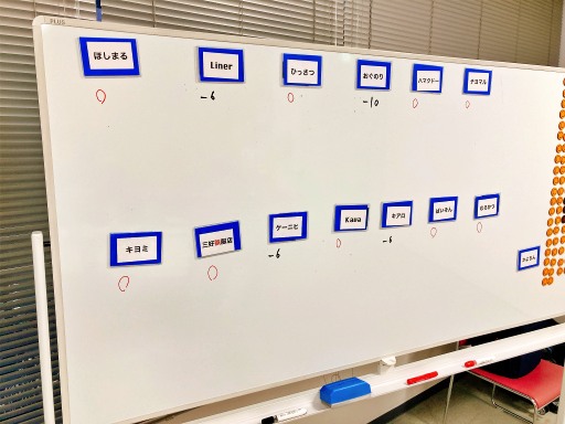 お昼休みのうちに、かよちんさんがホワイトボードにテーマヒントも書いててくれました。これはわかりやすい(笑)