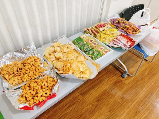 [冒頭の画像の説明]↑11月例会の差し入れお菓子の山々(笑)。今月も午後枠では結構おかしを食べれる「もぐもぐタイム」の余地はあります。