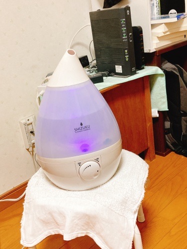 いつもこの時期に愛用している「SHIZUKU」という加湿器を物置から取り出しまして、タンクに水入れて使い始めました。