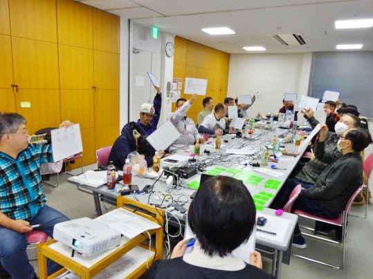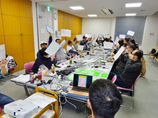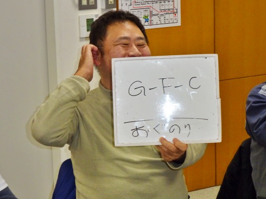 そしてこの時、前の方にプロジェクターからの画像の選択肢を見に来てた三好総統が「H:(おっぱいの大きな女性芸能人の)写真集をいっぱい持ってる人」とぽつりとつぶやいて「それはあんただけだろ。…あ、ひっさつ会長もか」と返したら「やめてください(泣)」とひっさつ会長が(失笑)。