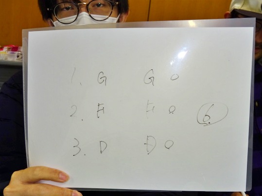 次の11人目はばいそんさんでした。このばいそんさんが窓側の列の席の一番最後で、次のほしまる先生から廊下側の列の席の面々の「親」になっていきます。で、そんなばいそんさんが引いたお題は…といいますと、