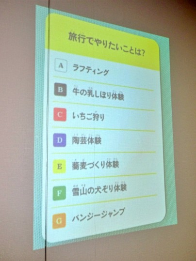 で、「おおっ?」「マジか?」ちょっと意外な上位1-3着だったようで軽いどよめきも(笑)。で、ナイスさんにその上位の理由とかを尋ねてみた所、「ショッピングモールは服とかが好きでよく行きますので」とのことで、そして「テーマパークは絶叫系が好きで、美術館も結構好きで」で、比較的好きなとこをチョイスしてみたとのことでした。