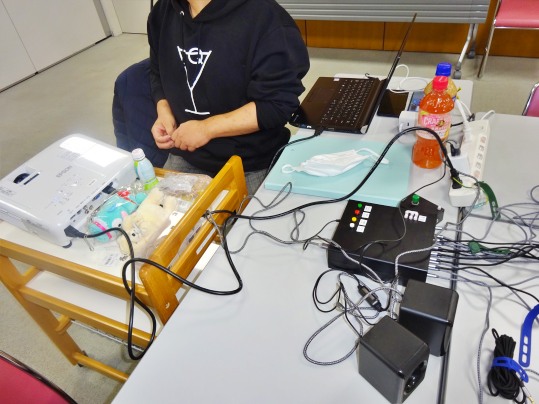 そして今回は机のセットが終わり、電気ポットを給湯室から借りてお湯を沸かそうとした際にロビーの方に行ってみたらハマさんが既に到着してまして、一緒に会議室へ。更にほしまる先生も到着されたので3人で一緒にバカトークしながら諸々の準備をしてました。