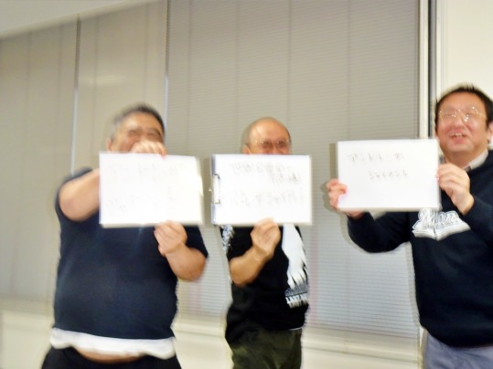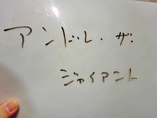 3)シンキングタイム(1分半でした)→ボードへの書き込みが終了したら1人ずつ回答を発表する。