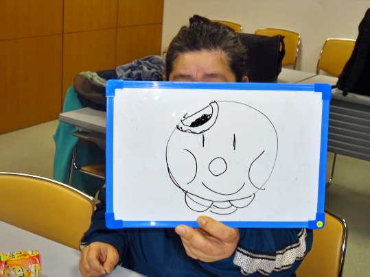 「アンパンマン」でした。しかも似顔絵で、ちゃんと誰かを助けて顔のアンパンを食べさせているってとこが通だなーと(笑)