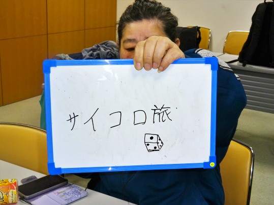 「サイコロの旅」。例の「水曜どうでしょう」の名企画のやつですね。いやーダンナの三好総統(と三好総統の盟友のひっさつ会長も)といっしょに「はかた号」に乗ってケツの肉が取れる夢とか途中の壇ノ浦PAで「眠れないんだよお」とぼやくのをすぐ横で聞いてほしい(笑)