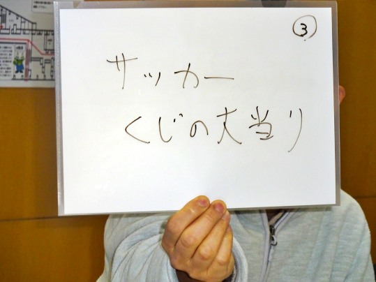 チヨマル先生が「サッカーくじの大当たり」、ひっさつ会長が「佐渡旅行」と。ま、むろかつからはひっさつ会長に「ん、島流し?」と余計なツッコミを喰らってましたが(失笑)。そしてハマさんの「サッカーW杯決勝戦の現地観戦」ってのもなかなか。これは2002年の日韓大会の決勝がハマさんの地元の横浜だったんすね。今の日産スタジアムと呼ばれているとこになりますです。