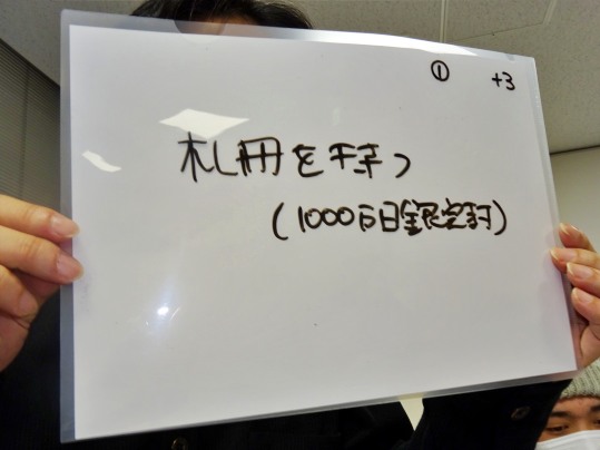 そうなると5人目のばいそんさんの回答も冴えまくってて「酒を1万円分おごってもらう」と(爆)。ばいそんさんと同じくお酒が大好きな三好総統が物凄くニタニタ顔してうんうんと頷いてたのは言うまでもありませんです(大汗)。