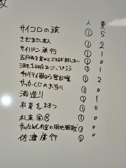 キヨミさんの「サイコロの旅」が最多票を得まして、キヨミさんに+5pが入りました(笑)。ま、ひよしコンビといっしょにちょっと旅してこい、という説も(笑)