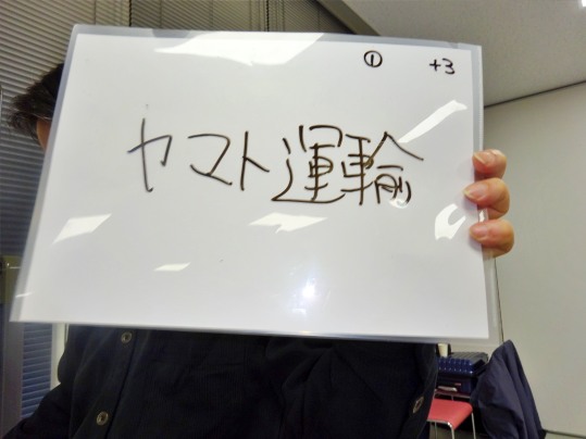 3)シンキングタイム(1分半でした)→ボードへの書き込みが終了したら1人ずつ回答を発表する。