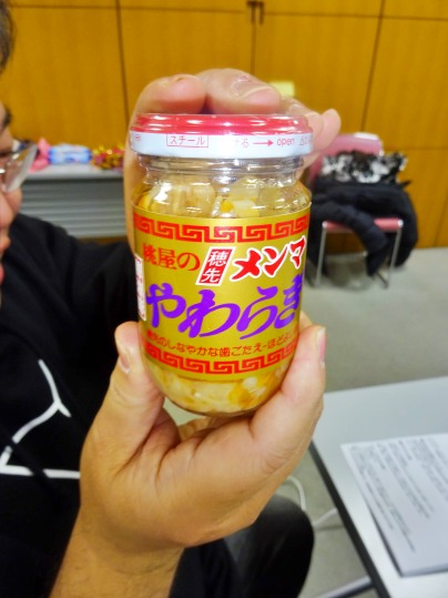 この昼休みの間に、公共施設の真ん前の建物の地下にあるスーパー「マルエツ」で、じょうさんがバカウケを取った「桃屋の穂先メンマ・やわらぎ」の実物を購入してきてました。もうこの時のあまりにもバカウケが凄かったので、