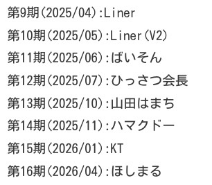 ほしまる6◯1×、ハマクドー5◯、KT5◯2×、ひっさつ会長4◯、Liner4◯1×、じょう4◯2×、