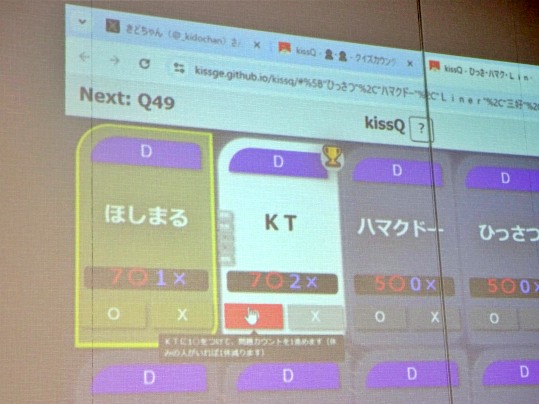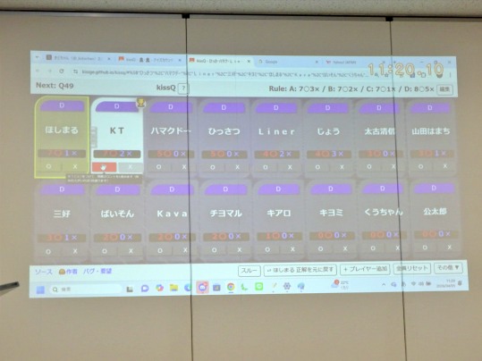 これでほしまる先生も7◯(1×)でリーチとなりまして、ポイント的にはKTさんと並び、暫定順位的には誤答が少ないほしまる先生が暫定首位を奪い返すことに。
