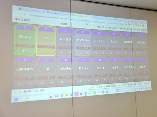 こんにちわ、番頭役のむろかつでございます。2026/04月例会の報告記を連載でお送りしてます。6回目は午前2枠に開催しましたむろかつの自作問題フリバ企画「八高戦」報告の4回目です。いよいよ終盤戦、今回は未だ8◯勝ち抜けが出ぬままやはり大混戦となっておりました。