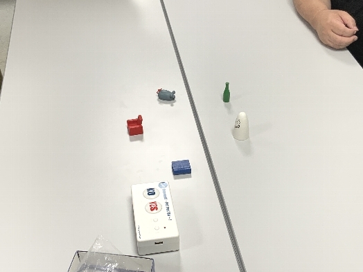 ↑実際に奪い合うコマはこんぐらい小さいもので(なお下の方に写っているのは当会の初代の早押し機「スーパーハヤオシピンポンブー」です。今から思えば懐かしい(笑))、