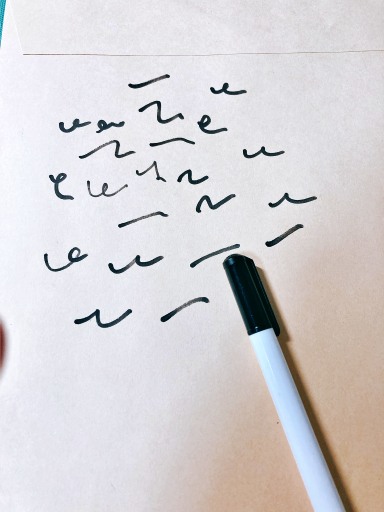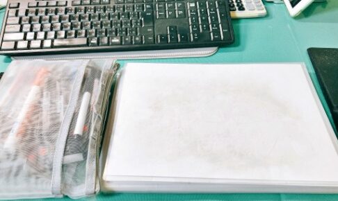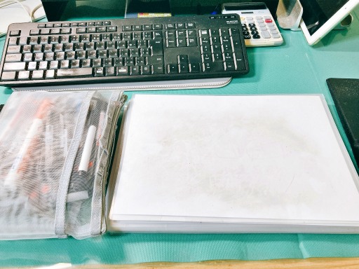 ま、ダイソーとかで売っているボードはちょっと嵩張るのと重いので、クリアファイルの中に硬めの白紙(光沢紙とか)を入れて、そのクリアファイルの表面に文字や絵を書いてもらっています。