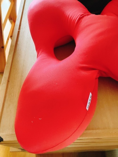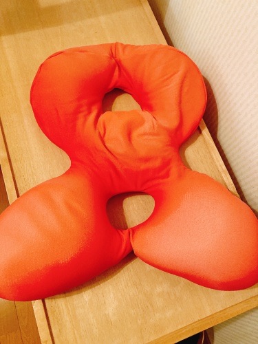 中のビーズが下に落ちまくったり(常々中のビーズを戻して形状を整えつつ使ってました)、更にヨレヨレになりすぎて「腰痛防止クッションにも関わらず、腰(の腫れた患部)が痛い」というとんでもないことになってしまってました。で、ついでに腰が疲労度でガチガチとなって腰痛まで発生する始末でした。