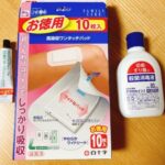 とりあえず家ではお風呂は入らずシャワーで済ませて、シャワーを浴びた後に貼ってたガーゼを剥がして直後に妻にティッシュで患部を消毒液を塗ってもらったり、抗生物質の塗り薬を塗ってもらったりして最後に新しいガーゼを交換してもらってました。昨日あたりからはセイムスで購入したガーゼが使い切ってしまったので、少し離れた「サンドラッグ」で買ってきたテープのように貼れるガーゼを追加購入して、朝と夕方に1日2回交換してもらってます。